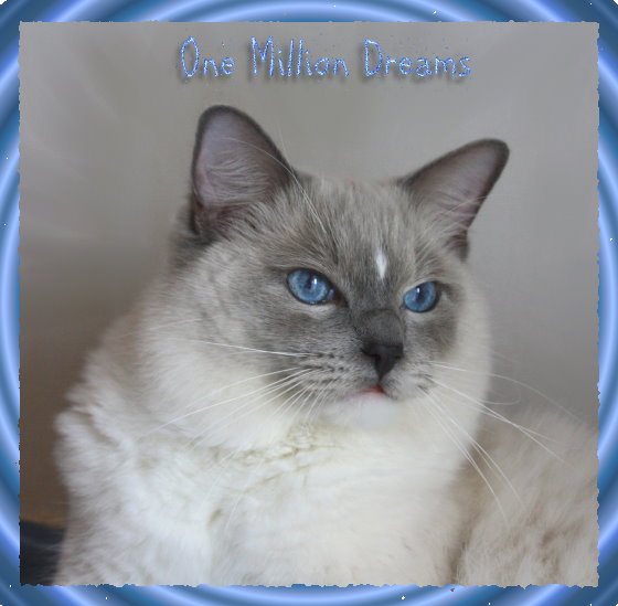 eine ganz spezielle Geschichte für sich...Er wird nicht umsonst "Dreamy" gerufen..:!:-) Er IST vom Aussehen her ein Traum... Er ist ein Träumerle, - kein bisschen dominant- , was bei unserer Kater- Situation extrem wichtig ist... Nie hätte ich es mir träumen lassen, gerade zum jetzigen Zeitpunkt einen neuen kleinen Kater mit seinen Vorzügen zu finden..! Er hat zu allem anderen das perfekte, einfach traumhafte Ragdoll- Wesen..! ...Mit ihm ist ein riesengroßer Traum von mir in Erfüllung gegangen, denn seit Faramir von Anderland hatten wir nie mehr ein Kitten mit dieser speziellen Optik, die ich so sehr liebe..! - ! )) Und sowohl wir als auch Dreamy`s Zieh- Eltern haben noch jede Menge Träume, die realisiert werden wollen, und bei deren Erfüllung er durchaus eine Rolle spielen könnte...:-) Somit konnte der kleine Mann nun wirklich keinen passenderen Namen erhalten als: ... "One Million Dreams of Lucill`s Doll" ...!!! Dreamy ist ein wirklich aussergewöhnlicher kleiner Ragdollkater. Obwohl er von der Statur her sowohl lang ist als auch lange Beine hat, vermittelt er in erster Linie einen Eindruck von Kraft und Substanz, und er wächst unglaublich schnell bislang. Sein Kopf ist unbeschreiblich ausdrucksstark, was nicht zuletzt auf seine so schön gesetzten großen Augen zurückzuführen ist, in denen man schlichtweg versinken mag, wenn er einen so intensiv und offen anschaut... Auch alles andere lässt kaum Raum für Verbesserungswünsche offen: Er hat ein schönes Profil, tadellose Ohren, eine wunderbar seidige Felltextur, und eine absolut entzückende Diamant- Blesse auf der Stirn. Wer ihn als Persönlichkeit erleben darf, muss ihm sein Herz öffnen, denn seine Ausstrahlung ist mehr als charismatisch....Geradezu magnetisch..!!-:)) Freilich ist der kleine Prinz auch verspielt, und geniesst kleine Rangeleien mit Freundin Jackie. Aber sein grösstes Anliegen ist es, uns so dicht wie möglich zu verfolgen und zu belagern.... Und davon kann er weder genug kriegen, noch kann es ihm zu eng sein bei und mit uns, und das ist im Zusammenleben mit ihm einfach unbeschreiblich schön. Inzwischen haben Dreamy und Jackie - 2016 - ihre ersten Kinder großgezogen, und Dreamy hat sich hierbei wirklich tatkräftig miteingebracht..! Es waren vier außergewöhnlich schöne kitten mit tollem Wesen, auch unser erstes Lilac- Katerchen war dabei..! Wir danken Euch für Euer Vertrauen, liebe Silvia und lieber Bruno, und für diesen traumhaft schönen Kater::! -- Nachdem wir nun, etliche Jahre später, auf ausschliesslich wundervolle Würfe von ihm zurückblicken können, und wir zwei sehr, sehr schöne Mädchen von ihm behalten haben, war es inzwischen an der Zeit, ihm den wohlverdienten Ruhestand zu vergönnen. Wir sind sehr froh, mit seinen beiden Töchtern Lucy und Freya seine tollen Gene erhalten zu wissen, und damit weiter arbeiten zu dürfen...!!! -- Hier finden Sie weitere Bilder von Dreamy: