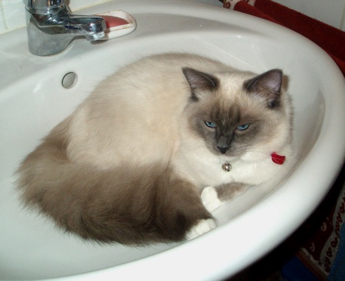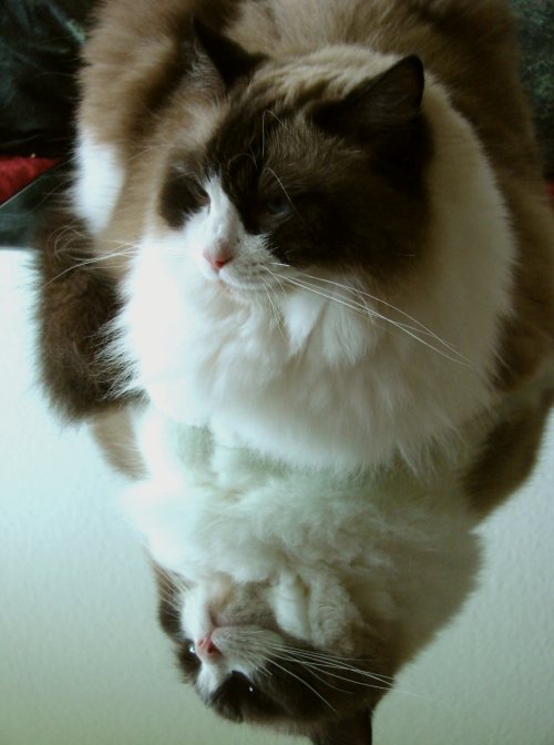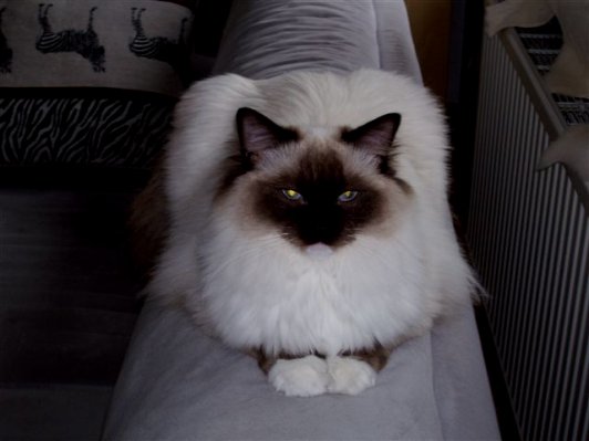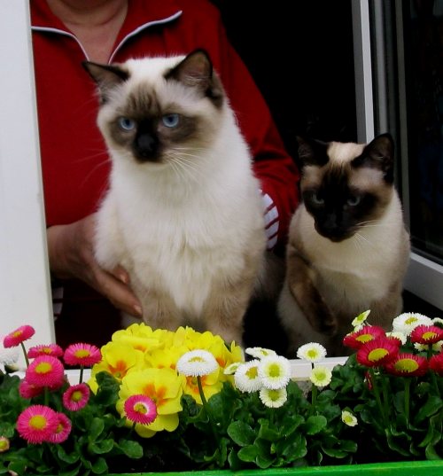 -- Obere Reihe Kandisha von Anderland, Seal Mitted, li. 5 Wochen, re. drei Jahre alt -- -- Darunter Veliccia, Blue Colourpoint, eine wahre Riesin! -- -- In dritter Reihe Uzuri "Sunny" von Anderland, unser kleines "Kontrastwunder".--
